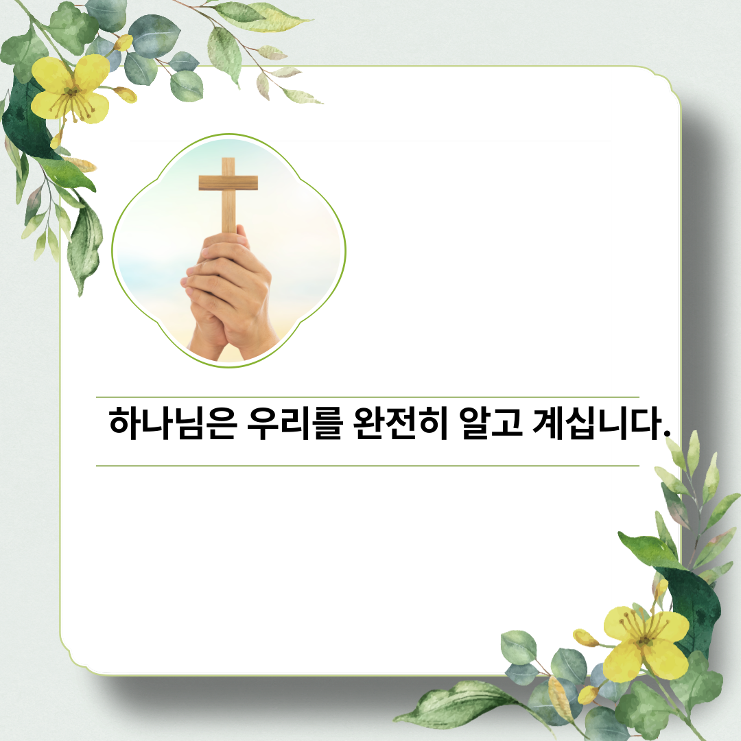 👉 하나님은 우리의 삶을 멀리서 지켜보는 분이 아니라, 모든 순간을 아시는 분입니다.